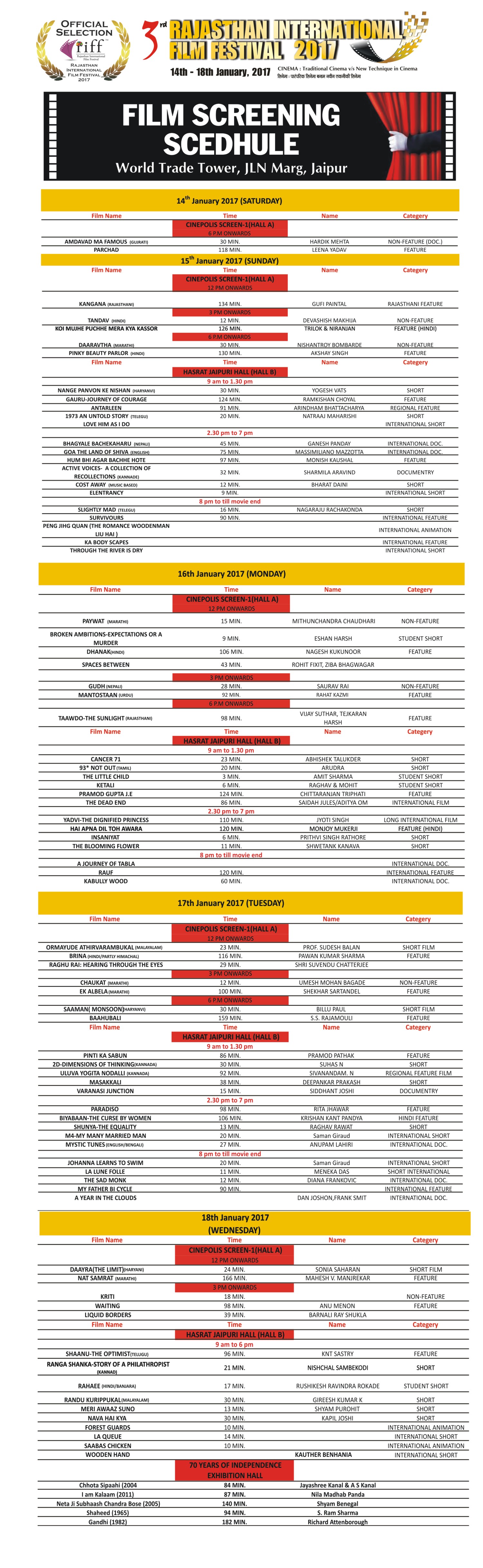 RIFF 2016 - Rajasthan International Film Festival, Jaipur is the biggest Film Festival in Rajasthan. Expected presence of more then 1000 Academic participation of youth in Internatioanl Seminar in this Four day extravaganza showcases a diverse, language independent, selection of the best feature films, documentaries and short films from around the world, include Film Bazar and Technical Sessions and RIFF Award Night including evening culture programme.